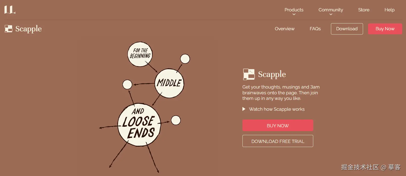 Scapple 是一款极简主义的非线性思维工具,提供完全自由的画布空间,通过节点与连线快速捕捉和连接碎片化灵感,实现零压力头脑风暴。