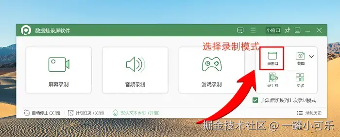 步骤1:想知道电脑录制视频怎么录制?超简单!先打开录屏软件,主界面里有好几种录制模式,今天咱们就选择 “窗口录制” 来试试手。