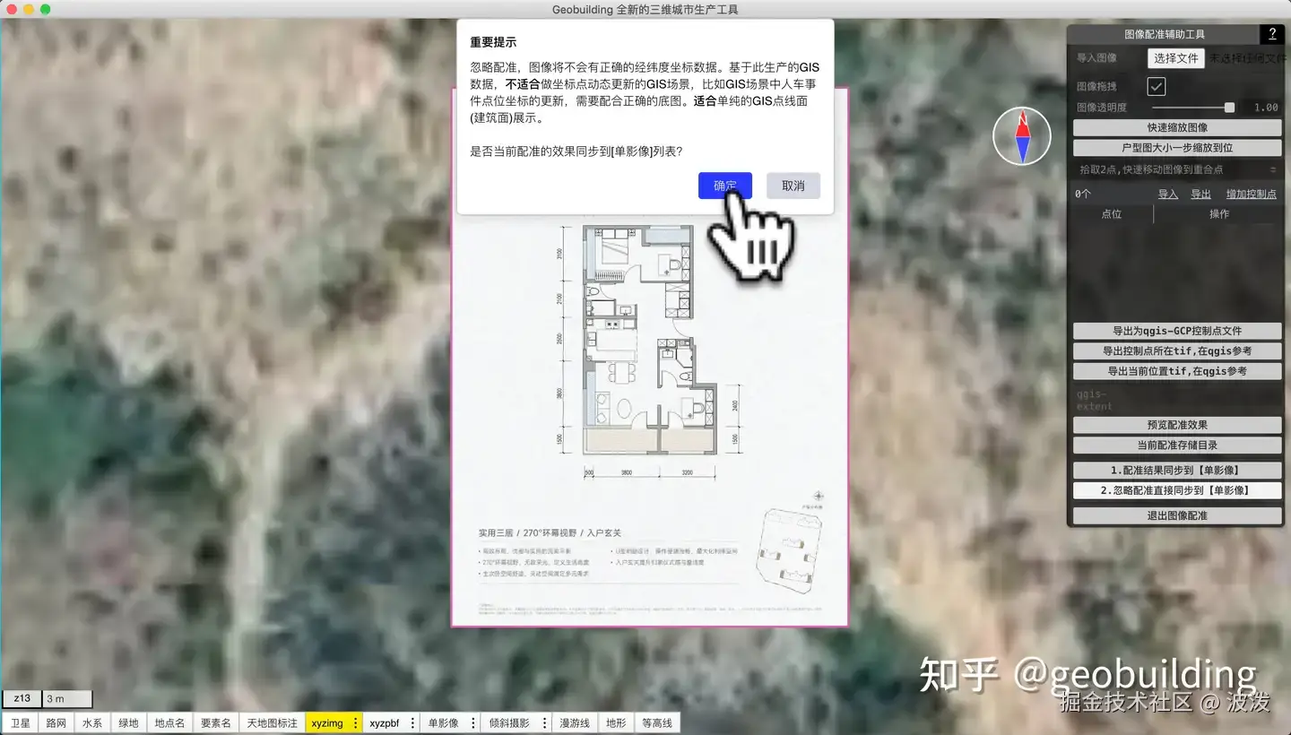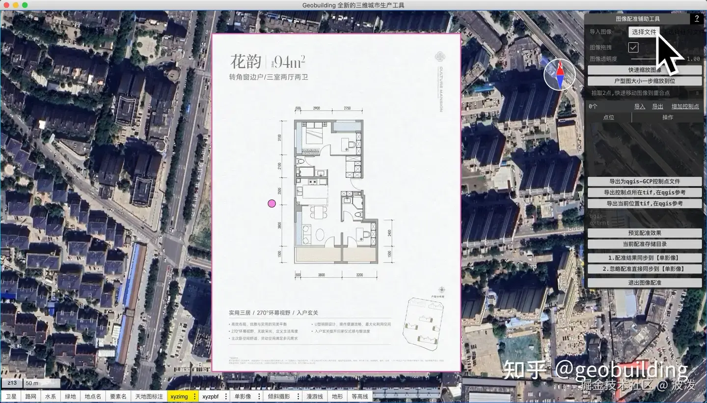 注意,找到户型所在楼盘大致位置,可用于后期室内采光查看。也可以在任意地理位置制作。