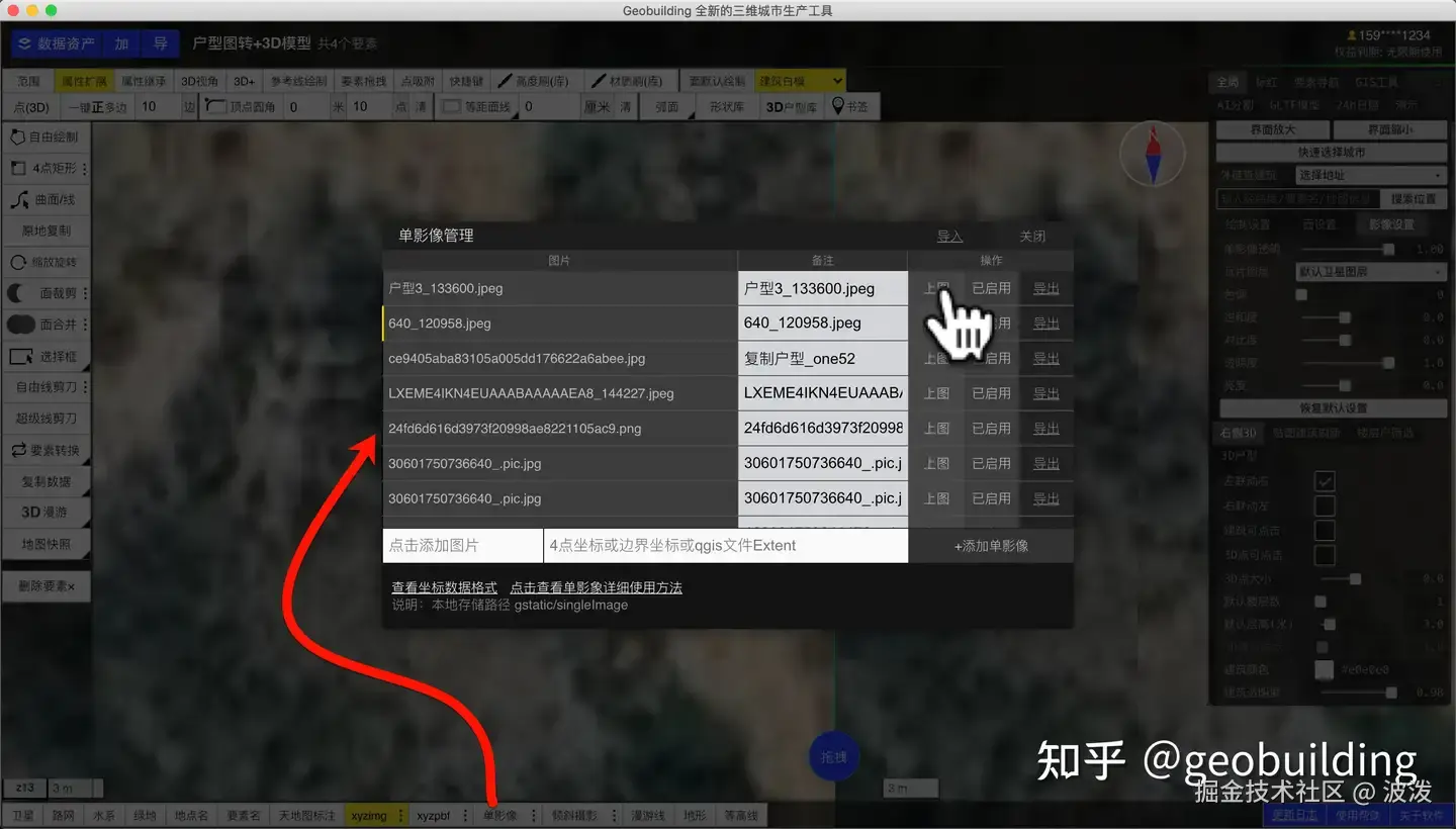 回到软件主界面,在左下角【单影像】中找到刚才配准的图片,点击【上图】