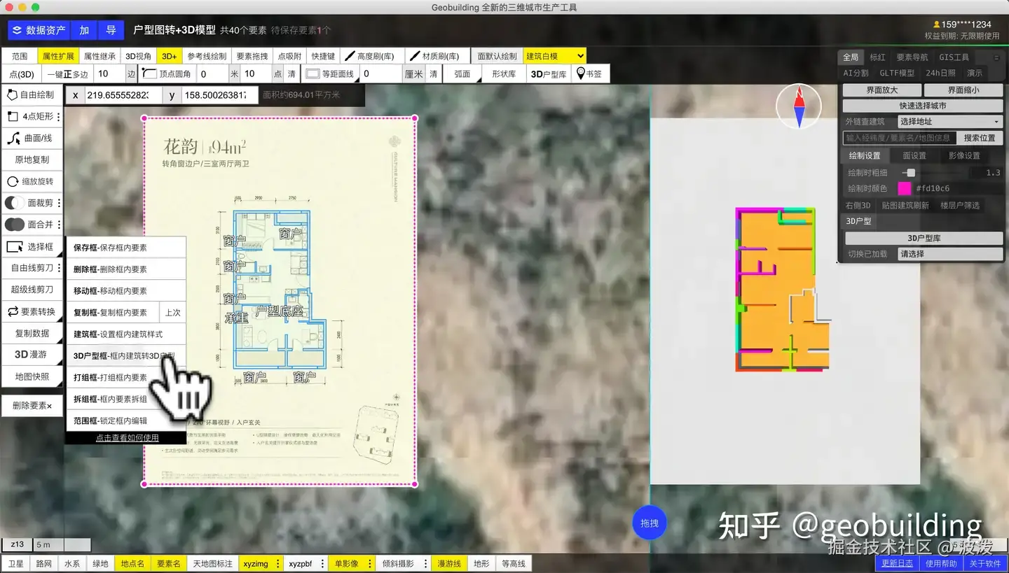 点击左侧【选择框】-3d户型