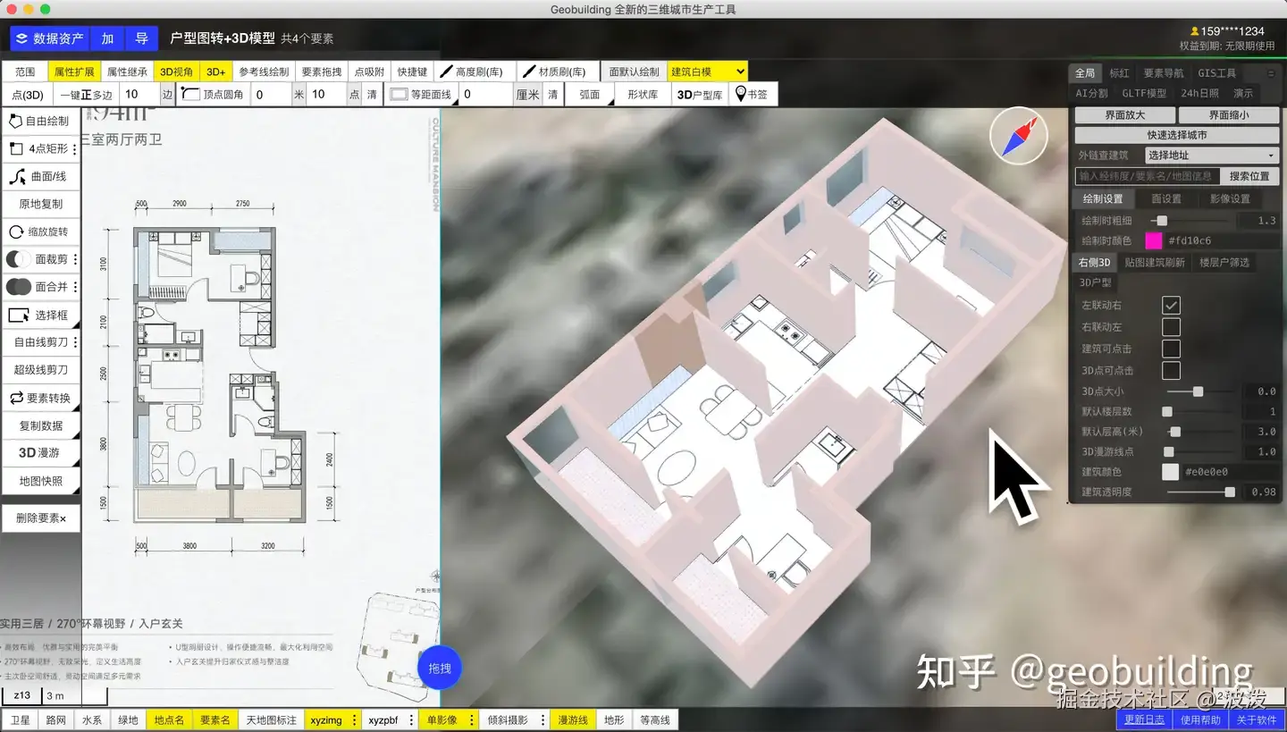 你见过通过GIS制作3d户型(室内)模型吗?它高度可用!将2d户型平面图转换成3d模型文件,包含门窗,户型图材质。