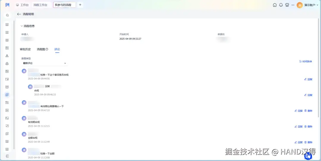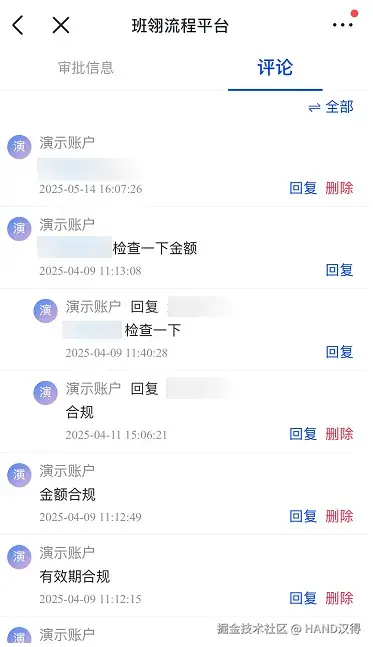 实时沟通,快速解决疑问 审批人在处理待办任务时,若对申请内容存在疑问,可直接在评论区留言,@相关人员进行解答。例如,在项目预算审批中,财务总监对某项费用支出存疑,通过评论功能@项目负责人,对方可立即回复解释,避免反复退回修改,加速审批进程