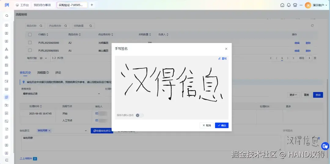 支持审批人在PC端/移动端手写签名审批,实时存档,满足合同签署、财务报销等场景的合规性要求