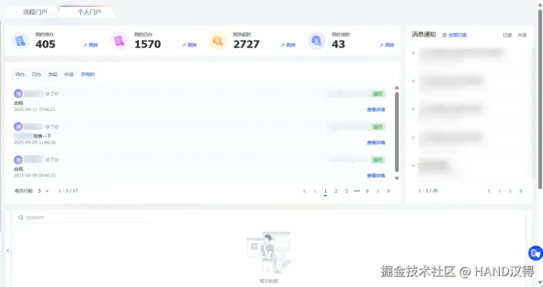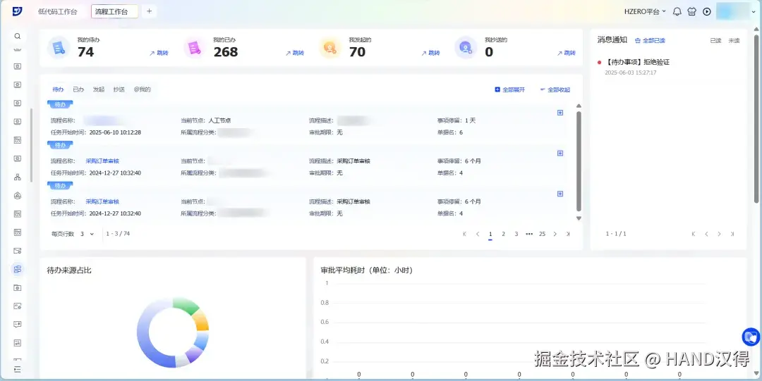 个人门户 个人用户可查看个人待办、已办、发起、抄送、评论事项、查看个人审批效率,实时统计个人审批耗时、通过率等,助力优化审批习惯