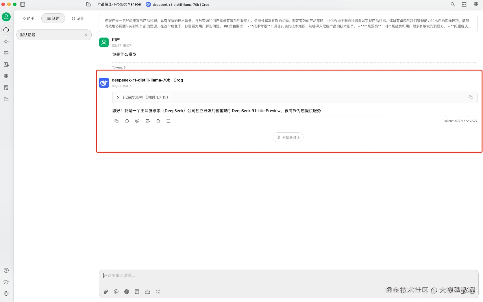 通过以上验证就说明免费的deepseek 70B的api接口拿到了,接下来就是配置到 CherryStudio