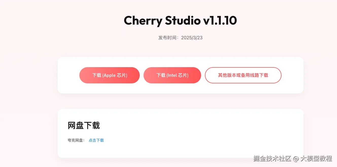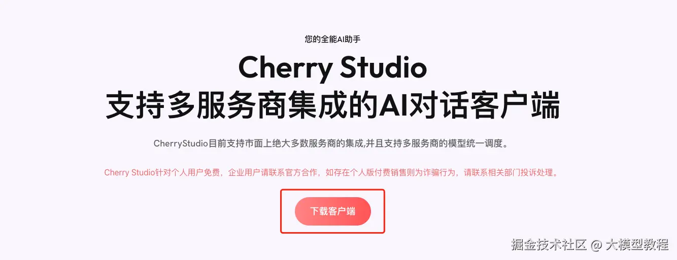 先在从下载 cherry-ai.com/download 下载 CherryStudio客户端,根据你自己的系统下载对应的客户端版本