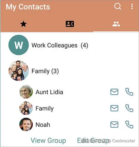 步骤 2. 打开应用程序后,您会发现显示您的联系人列表。您可以选择将联系人分组、将其添加到收藏夹、分配个人资料图片等等。请随意根据您的需求进行定制。