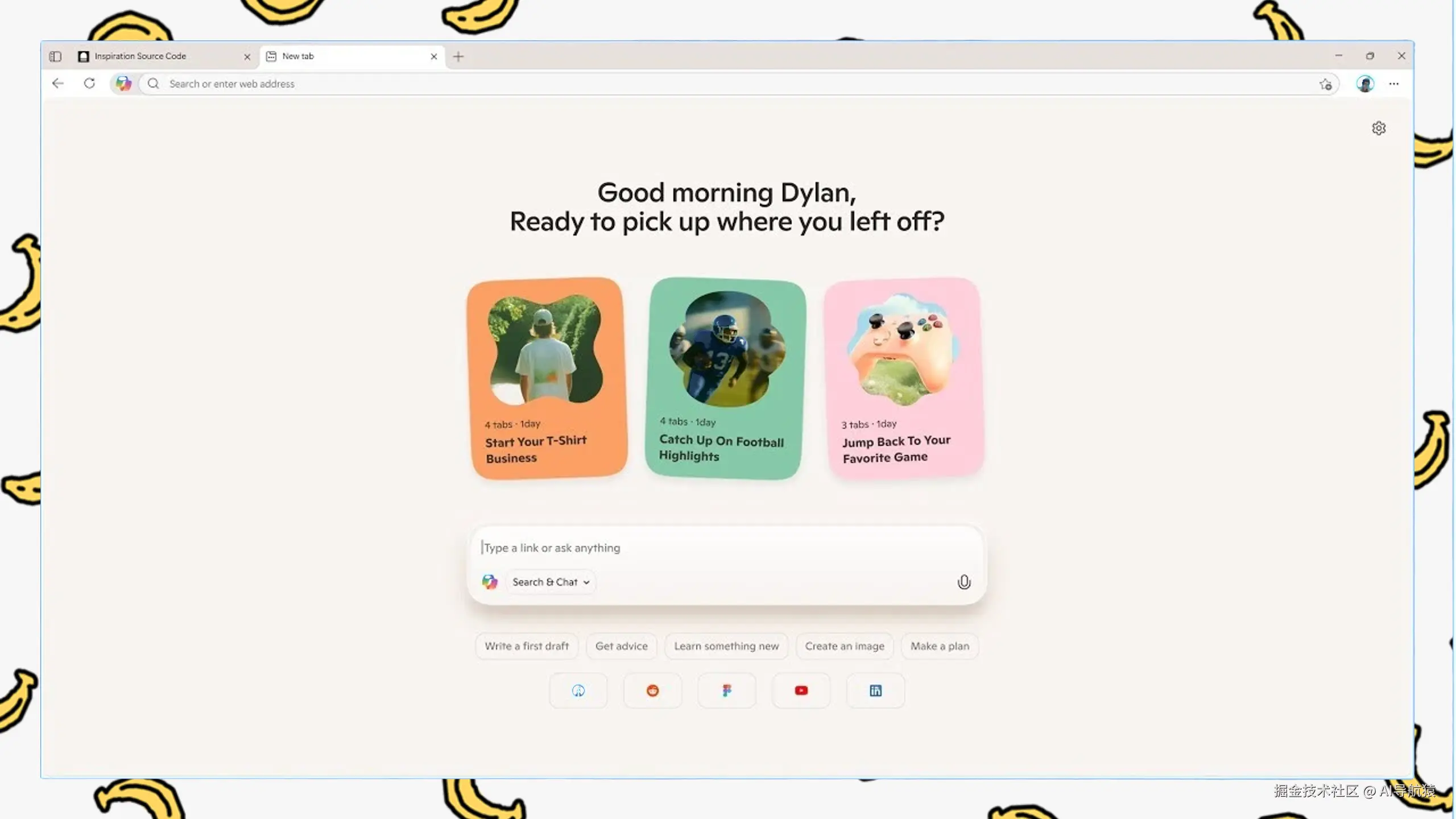**2. 新标签页=AI指挥中心?微软这设计太懂懒人!**启用Copilot模式,新标签页瞬间变样——干净得就剩一个输入框,像极了ChatGPT。