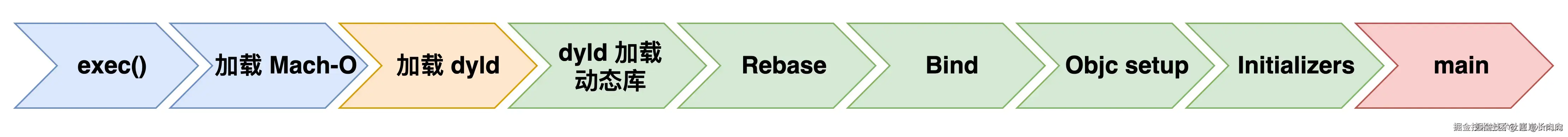 不过,需要注意的是,dyld 工作不仅仅如此,APP 启动流程中的 Rebase、Bind 等一直到执行 main 函数,都是由 dyld 来完成的。dyld 主要有两个版本:dyld 2 和 dyld 3,iOS 3.1~iOS 12 系统使用 dyld 2,iOS 13 开始采用 dyld 3。