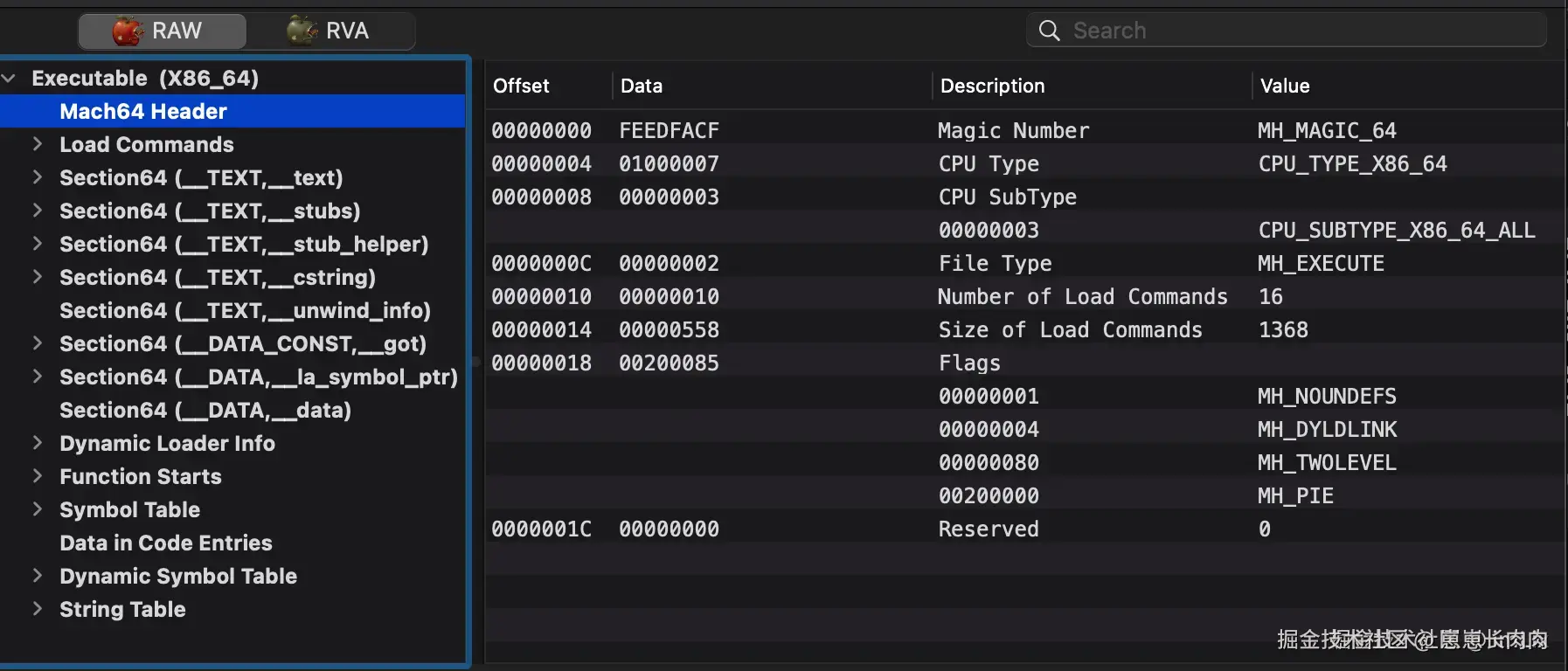 我们可以使用 MachOView 查看一个 Mach-O 文件内容: