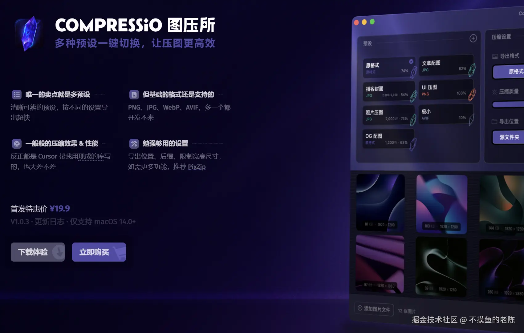 Compressio是一款macOS压图应用,提供便捷的图片压缩功能,并强调非程序员也能利用AI编程工具进行创作。