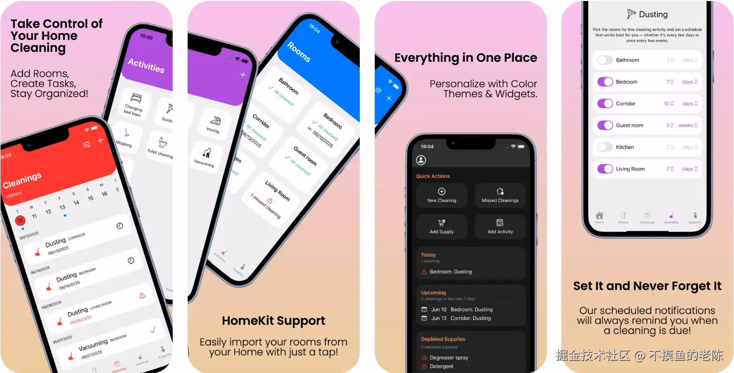 Cleaninder是一款家庭清洁管理应用,提供房间和清洁活动管理、自动提醒、供应品跟踪等功能,旨在让家庭清洁变得简单、智能和无压力。