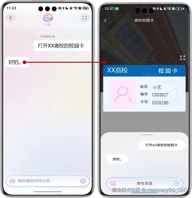 用户通过对小艺对话进行自然语言输入实现内容查询,知识问答,以及通过对图片选定识别问答进行服务获取。端侧意图调用直接进入应用功能页面,无需其他业务参数,可批量声明接入。开发者将应用内的功能声明接入意图框架后,用户可以通过小艺直接打开相应功能页面,比如"打开xx地图的查路线",实现一步直达。