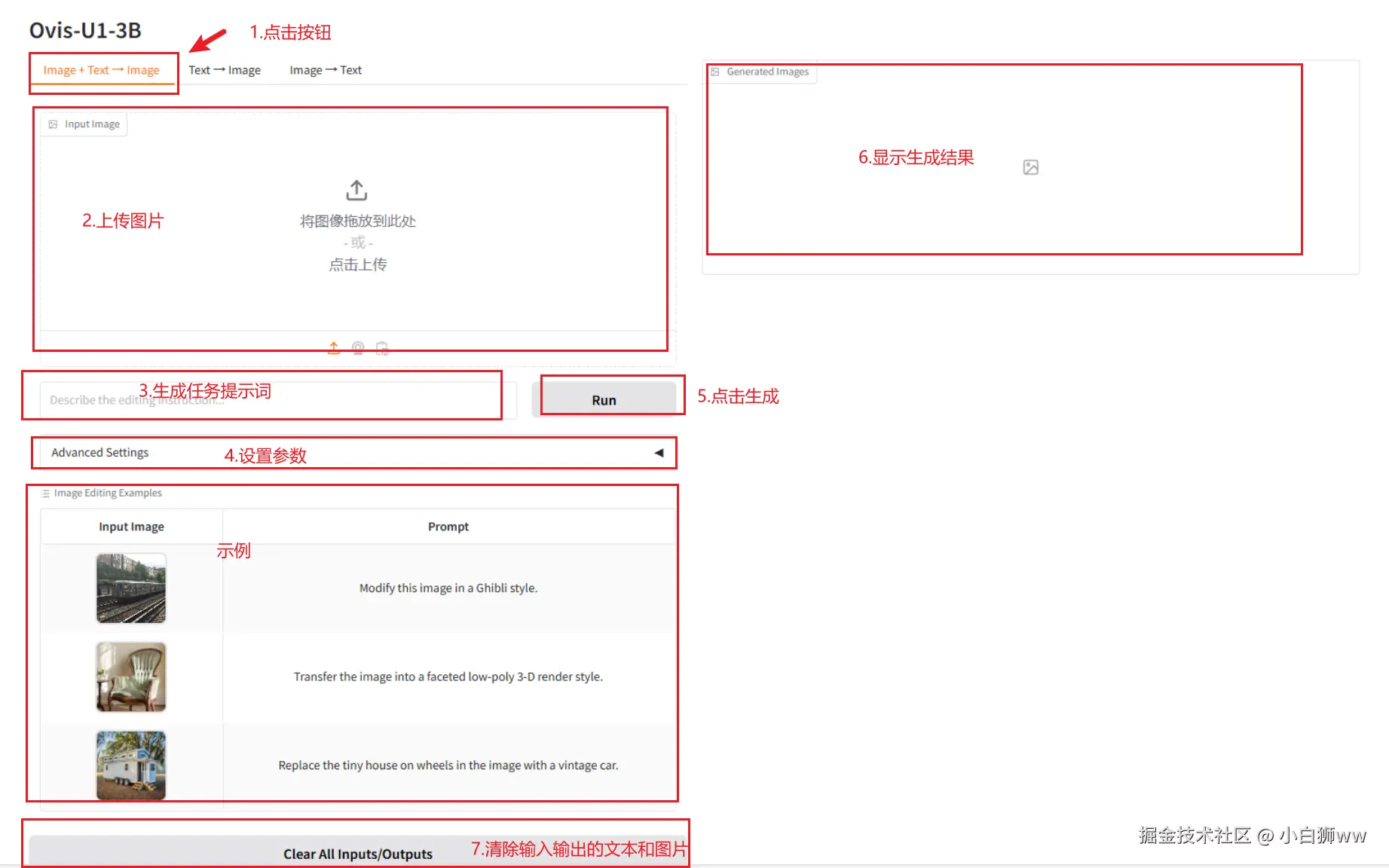 模型具备多模态理解、图像生成、图像编辑三合一能力,共有 3 个操作界面。