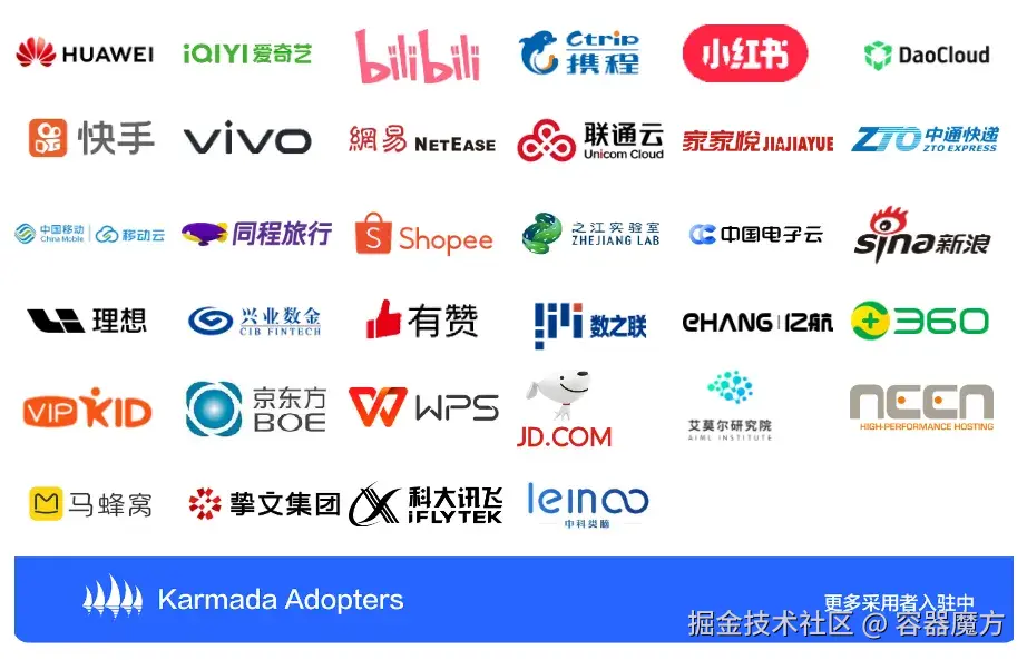 截至目前,Karmada 用户组已吸纳来自全球的35+家机构和组织。更多使用场景及案例研究请查阅:karmada.io/adopters