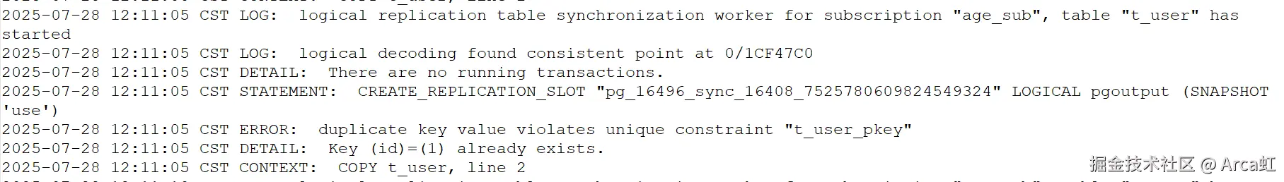 - 如果同步失败,查看 postgres 日志