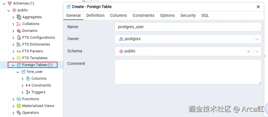 CREATE FOREIGN TABLE fore_user (