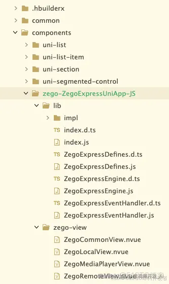 下载 SDK 到本地,解压缩 “zego-ZegoExpressUniAppSDK” 文件。将解压缩后的文件夹,直接复制到项目工程根目录下的 “nativeplugins” 文件夹中,如果没有该目录,请手动创建。