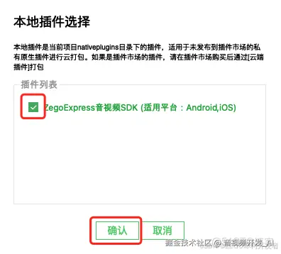 在弹出的选择框中,选择 “ZegoExpress 音视频 SDK” 后,单击“确认”后就添加成功。