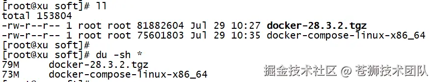 - 通过sftp或者其他工具上传两个安装包,分别是:docker-28.3.2.tgz、docker-compose-linux-x86_64