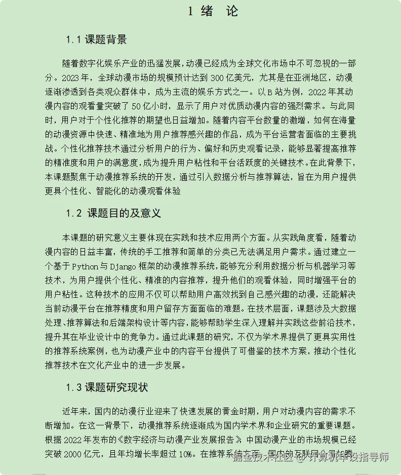 近年来,国内的动漫行业迎来了快速发展的黄金时期,用户对动漫内容的需求不断增加。在这一背景下,动漫推荐系统逐渐成为国内学术界和企业研究的重要课题。根据2022年发布的《数字经济与动漫产业发展报告》,中国动漫产业的市场规模已经突破2000亿元,且年均增长率超过10%。在推荐系统方面,国内的互联网公司如腾讯视频、爱奇艺以及B站等,都在不断优化其个性化推荐系统,通过大数据技术和机器学习算法,提升用户体验。例如,B站采用协同过滤和深度学习相结合的推荐算法,根据用户的观看历史和互动数据,提供定制化的内容推荐。然而,目前国内大多数平台的推荐系统仍面临着精准度和实时性的挑战,尤其是在冷启动问题、数据稀疏性和算法优化方面,仍存在一定的技术瓶颈。因此,针对这些问题,国内的研究人员也在探索更加高效的推荐算法,如基于深度学习的神经网络推荐和强化学习的动态推荐方法,旨在提高推荐系统的智能化和精确度。