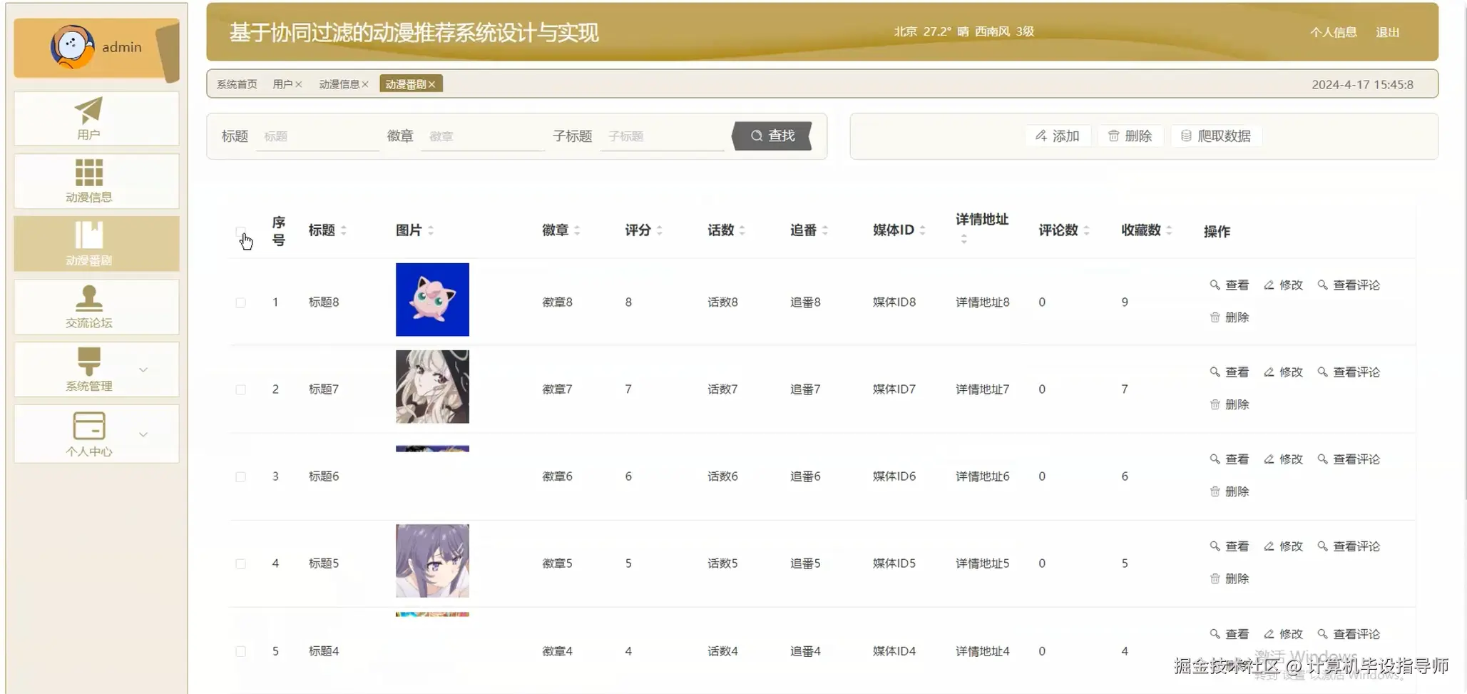 动漫推荐系统-图片展示