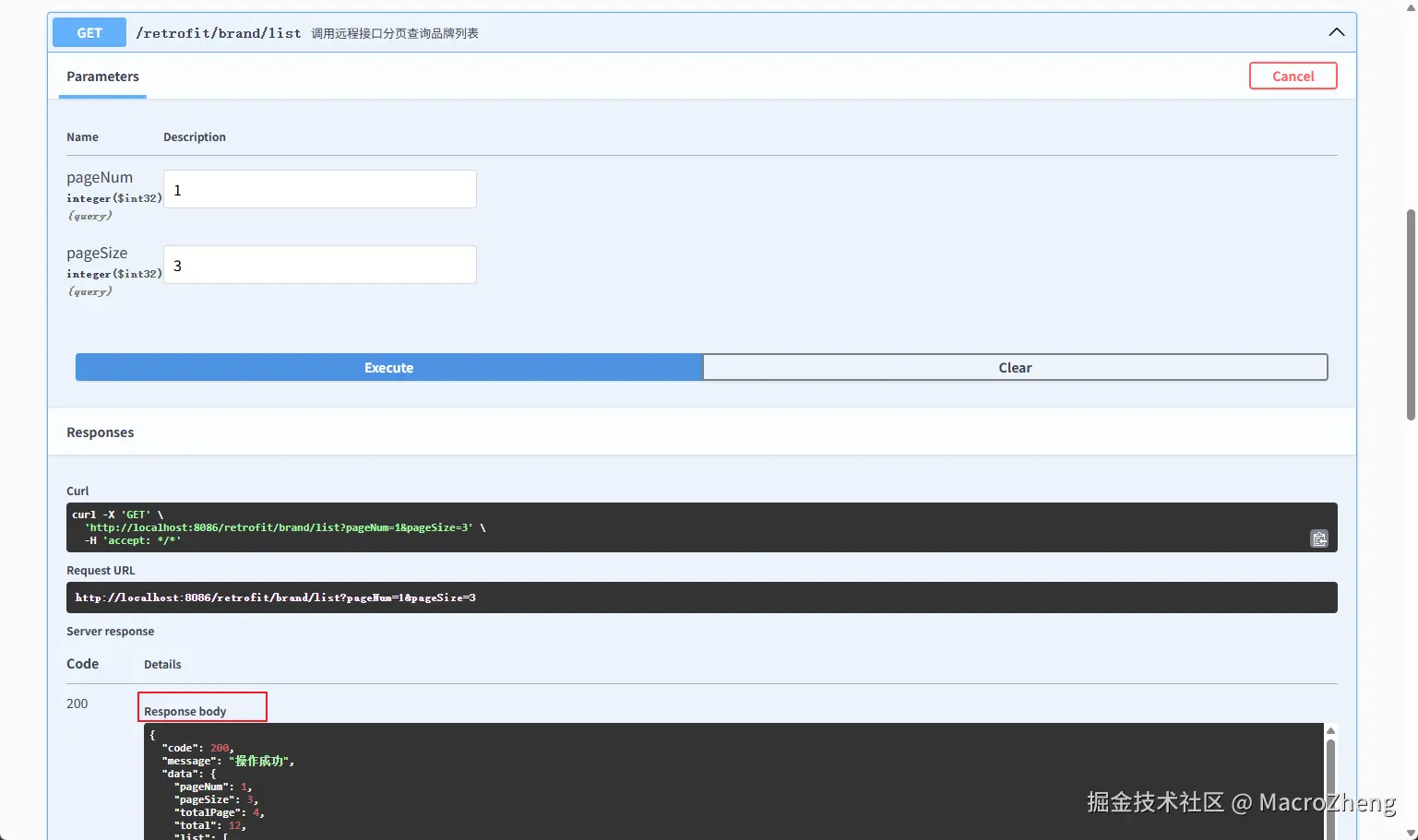 - 在Swagger中调用接口进行测试,发现已经可以成功调用。