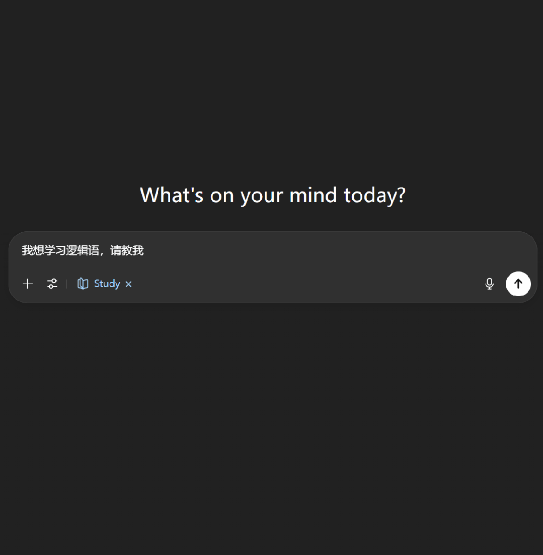 接下来,我们尝试了一下让 ChatGPT 教我们学习逻辑语。可以看到,学习模式下的 ChatGPT 首先会通过一些问题来了解我们对当前主题的掌握程度,之后便会按照用户的知识水平开展辅助教学。