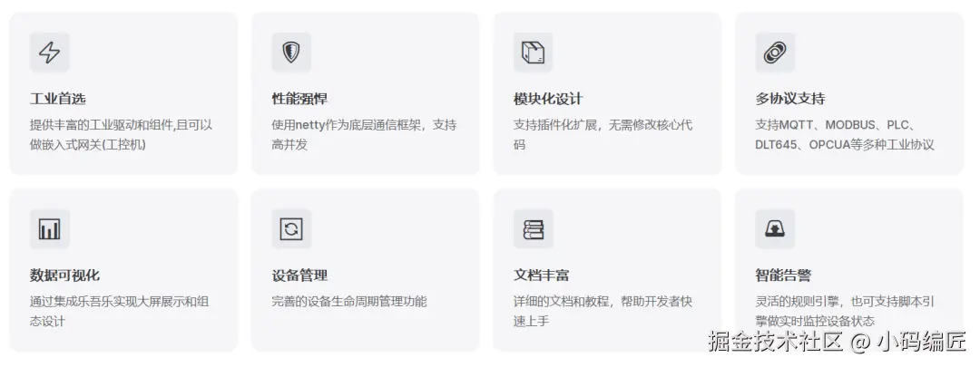 今天推荐一个一款工业级首的物联网开发解决方案 不仅可以做软网关, 还可以做嵌入式边缘网关。它致力于解决工业物联网中常见的通信协议适配、设备管理与数据流转问题。