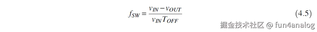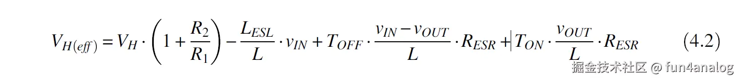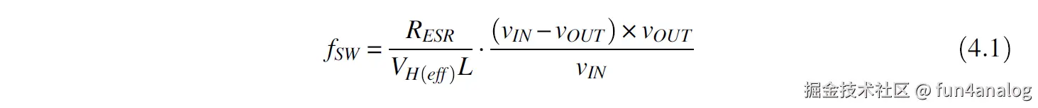 迟滞控制的频率为Eq 4.1, 由ESR, 电感, Vin和Vout决定, fs变化很大, 不适合EMI敏感系统.