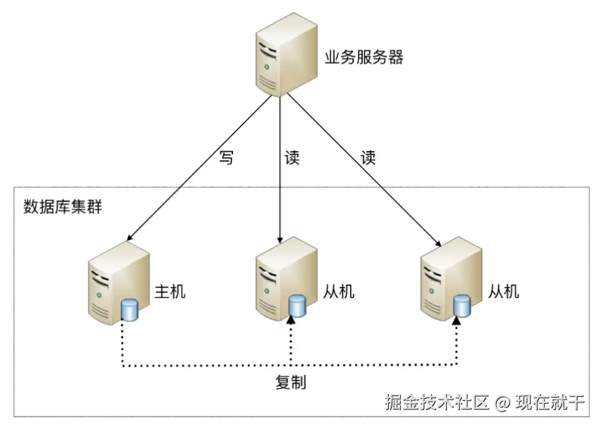读写分离原理:读写分离的基本原理是将数据库读写操作分散到不同的节点上,从而缓解服务器压力,提高服务器吞吐量。