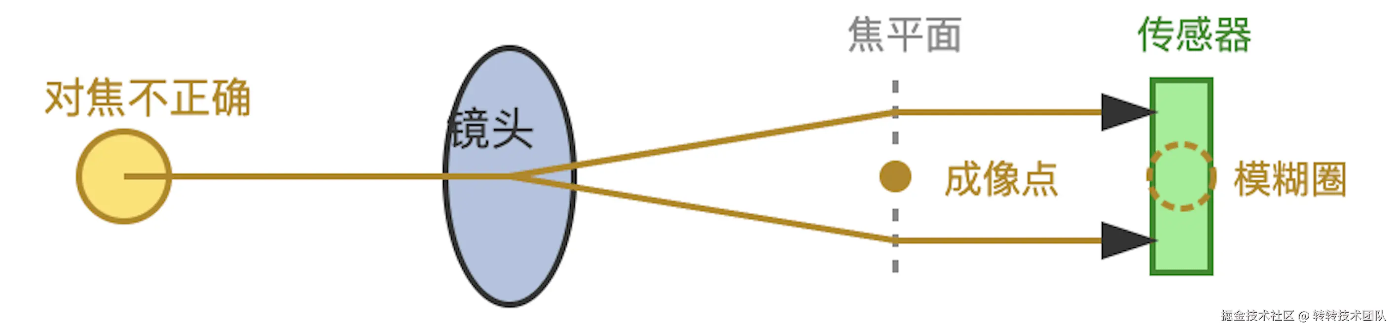 - 如果像落在传感器前后(即焦平面不在传感器上),画面就会变模糊。
