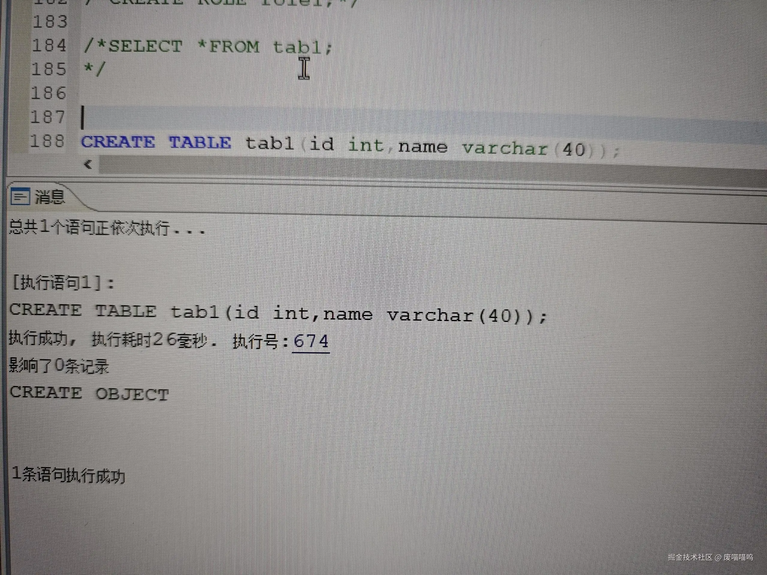 创建一张tab1表做个测试