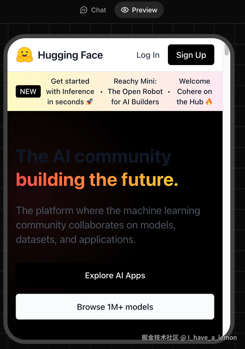 比如我在这里输入:huggingface.co/,点击按钮。 等待生成完成。我们先看一下这个原始的页面长什么样: