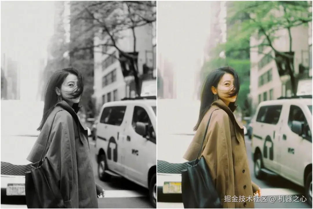 给黑白照片上色时,我们还可以自定义风格,比如输入「日系风格」,直出胶片感大片,氛围感拉满。