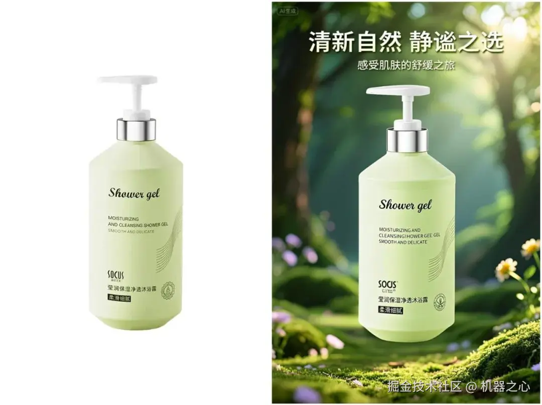 我们还可以制作商业产品海报,比如让它根据物品的属性替换为适合的背景,并在海报上添加字体。这下电商老板们该狂喜了,毕竟一年也能省不少设计成本。