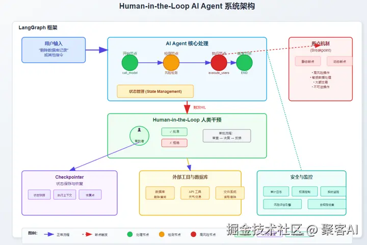 前言:Human-in-the-Loop(HIL)是一种AI系统设计模式,它允许人类在AI Agent的决策过程中介入并提供反馈或决策。在HIL系统中,AI Agent在执行某些关键操作前会暂停,等待人类的审批或输入,然后再继续执行。 这种模式特别适用于高风险或敏感的操作场景
