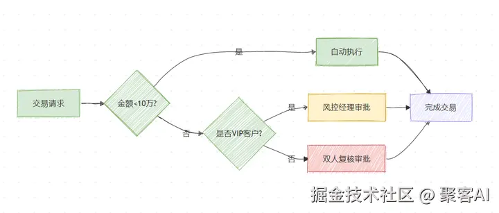 AI Agent处理用户转账请求,当金额>10万元时触发人工审批