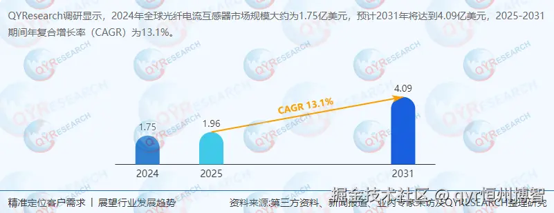 全球光纤电流互感器市场呈现“头部集中、区域分化”特征。根据QYResearch最新调研报告显示,2024年全球市场规模达1.75亿美元,预计2031年将增至4.09亿美元,2025-2031年复合增长率(CAGR)为13.1%。核心厂商包括ABB、Profotech、Arteche等,前三名占据全球62%的份额,形成技术壁垒与品牌溢价双重优势。