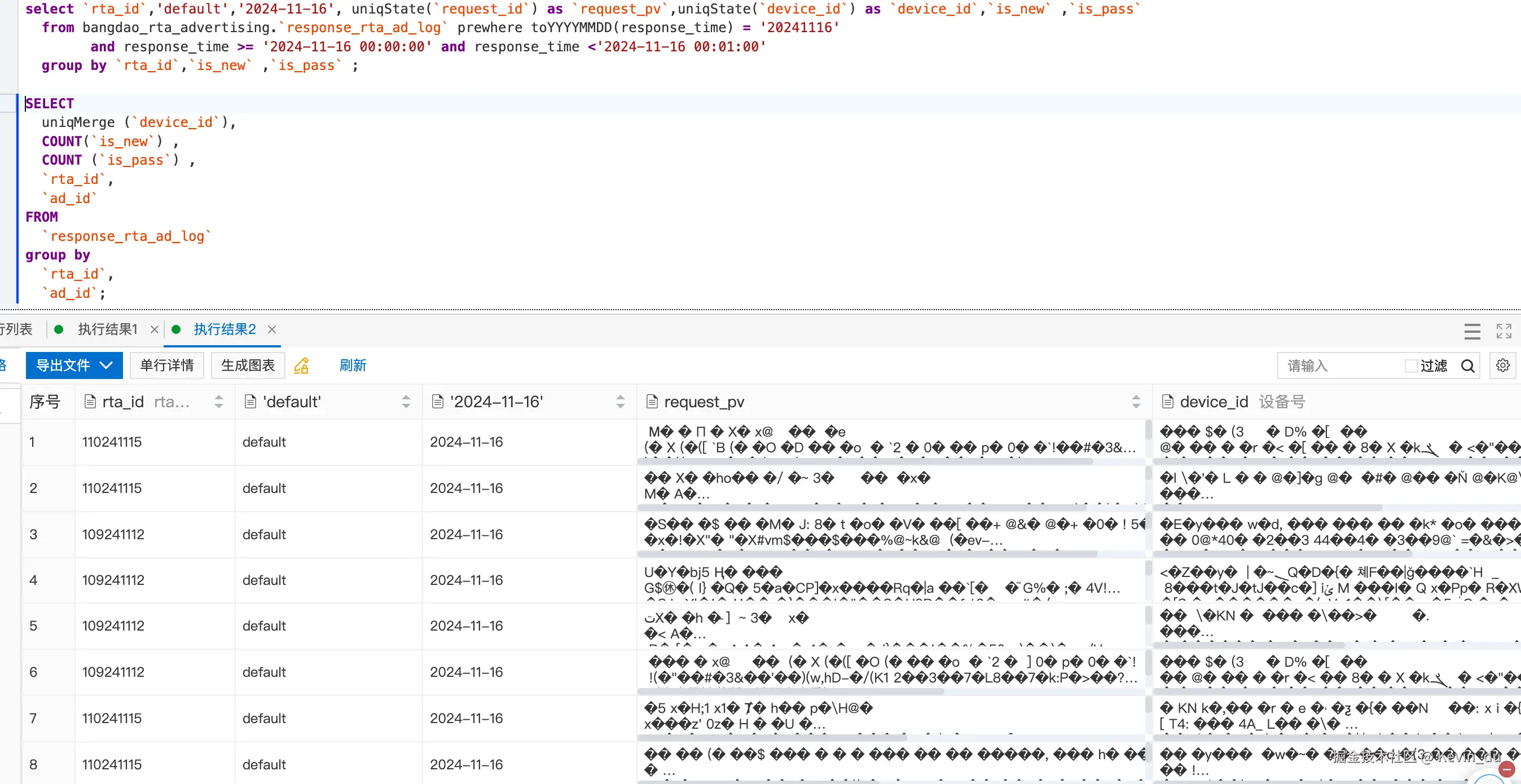 `device_id` AggregateFunction (uniq, String) COMMENT '请求uv',