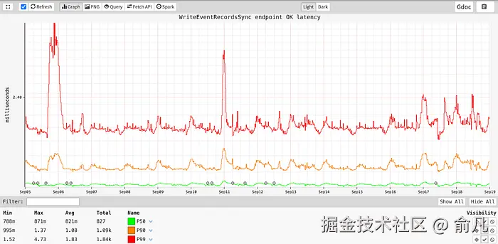 我们在时间序列中为不同端点设定服务级别目标(SLO)指标,以此来表明这些端点在特定命名空间下的性能应达到何种水平。如果响应未能在给定时间内返回,就可以对请求进行保护。