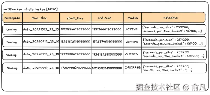 - 元数据表:存储有关每个时间切片在每个命名空间中的配置方式的信息。