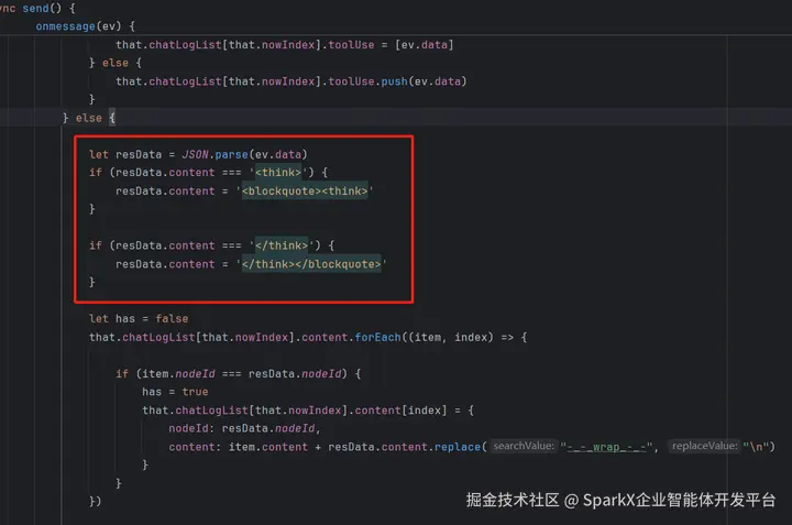 这里SparkX设置了开启思考信息的<think>标签,这样,前端就可以根据 标签去区别渲染 思考部分和回复部分,给用户更好的体验。