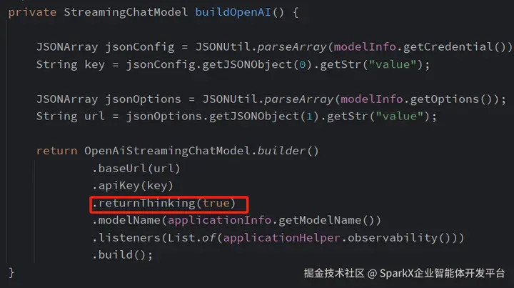 打开源码:sparkx.service.helper.StreamChatModelBuildHelper#buildOpenAI