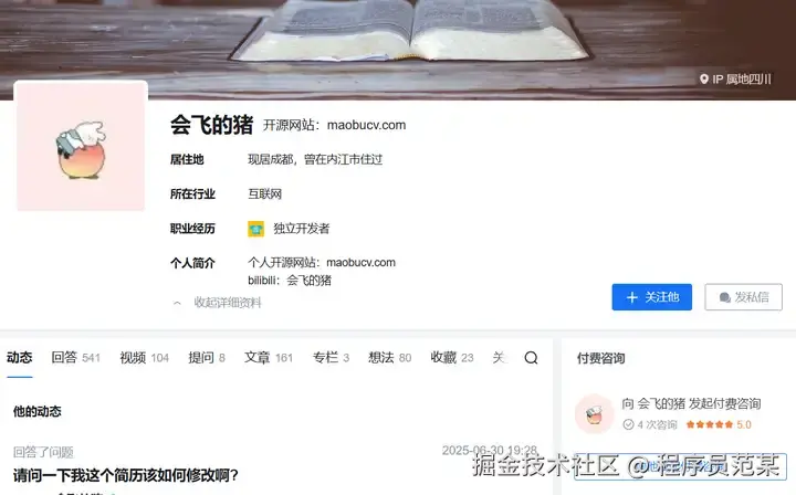 今天的主角,一位深耕网页应用五年的独立开发者,用亲身经历给出一个“非典型”答案:五年折腾,搭博客、做公众号、写文章、剪视频、做项目,轮番上阵,总收入仅几千元。但在持续投入、近乎“为爱发电”开发出开源简历工具“猫步简历”并收获1.5k star后,他找到了比“养活自己”更重要的东西——价值认同与自我实现。他的故事撕开了独立开发者光鲜表象,揭示了坚持的苦涩与回甘,也重新定义了“成功”。