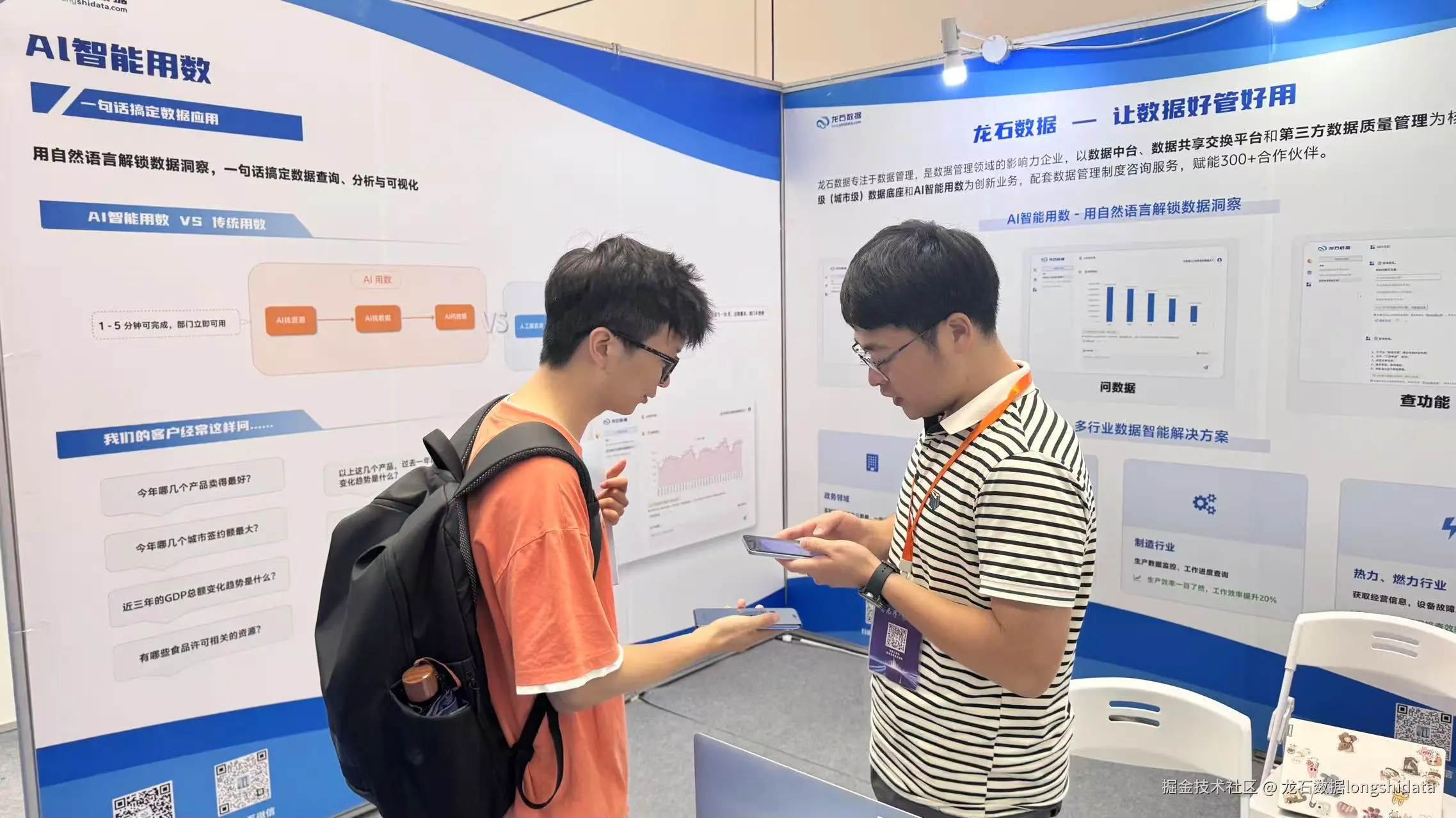 龙石数据作为数据管理领域的影响力企业,怀揣着 “让数据好管好用” 的使命参与了此届智博会。公司携 AI 智能用数、数据中台等产品,通过现场路演及沟通交流,全面展现了在数据管理领域的相关成果。