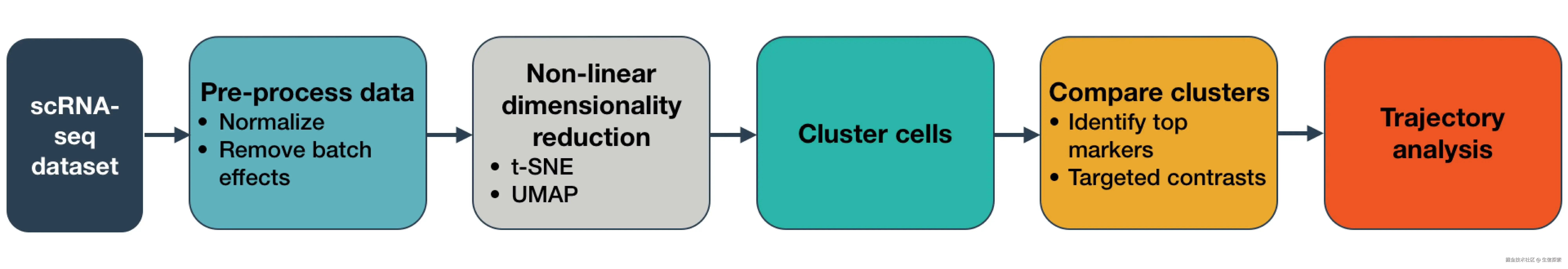 Monocle3的轨迹重建工作流程与聚类分析流程相似,但增加了几个关键步骤。下面我们详细介绍其核心流程: