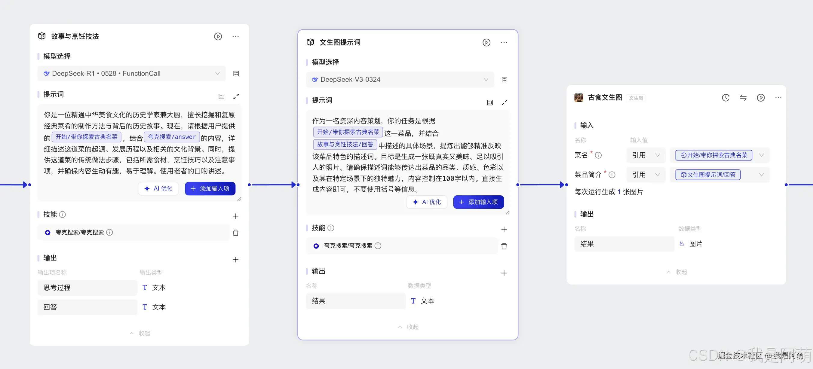 每次翻阅《红楼梦》《水浒传》等古典名著,书中描绘的美食总让人垂涎欲滴。像《红楼梦》里的胭脂鹅脯、《水浒传》中的武松打虎前吃的熟牛肉,它们不仅是食物,更承载着丰富的历史文化内涵。但很多读者和我一样,对这些美食的历史故事、制作方法等知之甚少。于是,我萌生了开发一个能详细介绍古典名著中名吃名菜的智能体的想法,让人们在阅读名著时,能更深入地感受美食背后的文化。