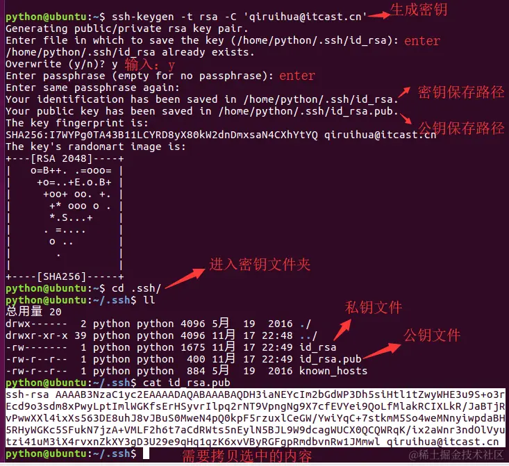 ssh-keygen -t rsa -C "qiruihua@itcast.cn"